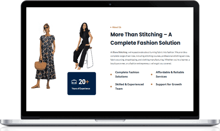 Bano Stitching was a creative fashion and tailoring business website project designed to showcase custom stitching services, craftsmanship, and modern fashion solutions. The project focused on building a visually appealing, user-friendly, and brand-focused digital presence that highlights services such as custom tailoring, bridal stitching, formal and casual wear, and made-to-measure designs. Emphasis was placed on clean UI/UX design, responsive layouts, and SEO-optimized content to attract customers and increase service inquiries.