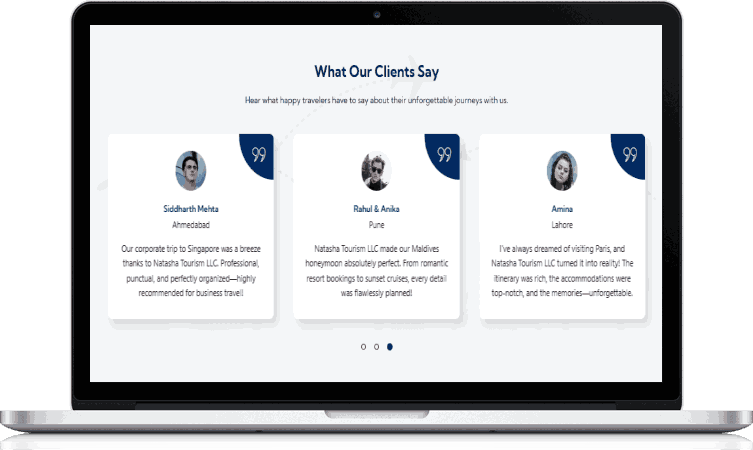 Natasha Tourism LLC was a professional travel and tourism website project developed to promote premium travel services, customized tour packages, and seamless travel planning solutions. The project focused on creating a modern, user-friendly, and trust-driven digital presence that highlights international and regional tour offerings, travel experiences, and customer-focused services. Key priorities included clean UI/UX design, responsive layouts, SEO-optimized travel content, and conversion-focused structure to increase inquiries and bookings.